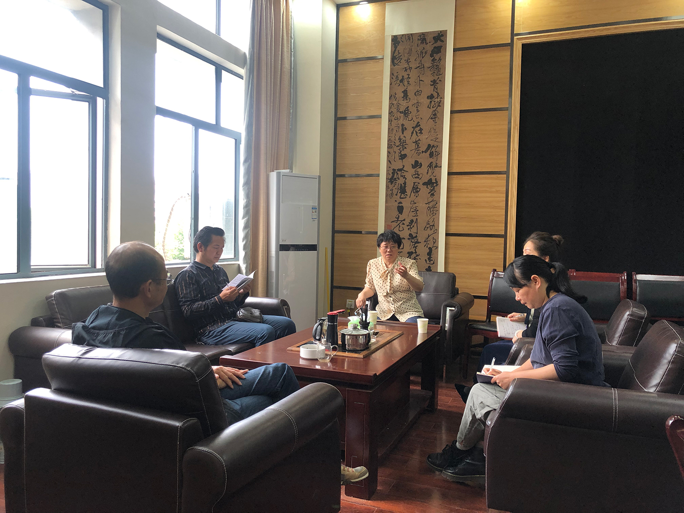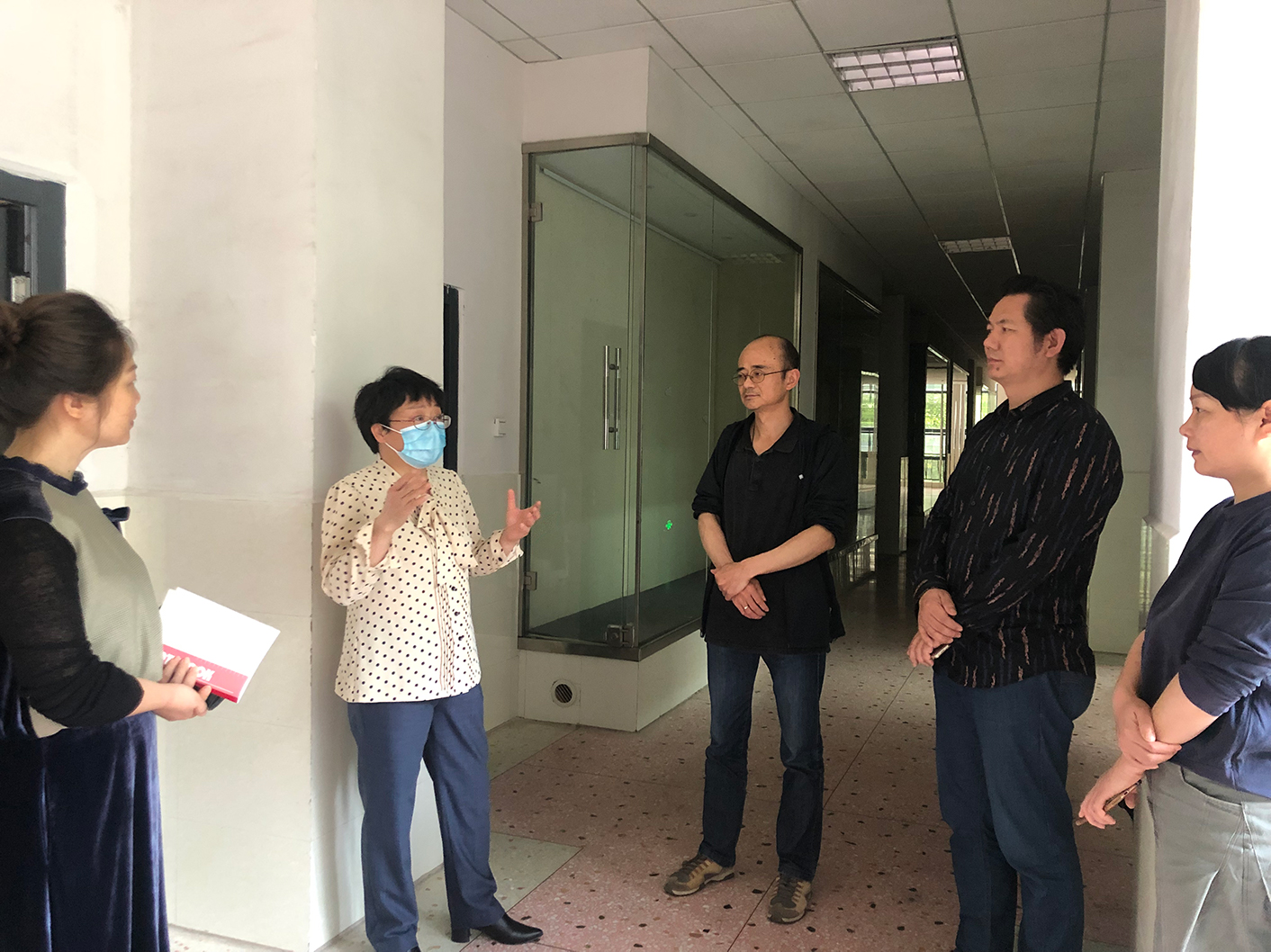 5月22日上午,BV伟德官方网站纪委李昱书记、纪委办袁向荣主任到BV伟德官方网站调研指导。李书记一行首先走访了解BV伟德官方网站开学以来各项工作安排、执行情况,尤其是疫情防控的落实、迎接员工返校准备工作进展情况。详细询问BV伟德官方网站是否有家在疫情高风险区的毕业班员工?相关的预案是否做好?然后到书法研究中心查看2019年教学考核材料、本科教学审核评估材料,充分肯定美设院教学及各项工作取得的成绩。在与美设公司党政领导班子座谈时,李书记强调,要继续通过团结协作发挥班子的凝聚力、战斗力,严格按照程序进行决策并做好相关记录;要继续加强党风廉政建设;打好“三大攻坚战”,需要科研方面也打开新局面。