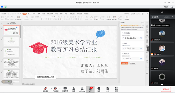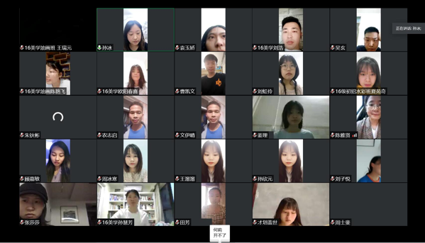 2020年5月21日下午七点,BV伟德官方网站组织2016级全体顶岗实习员工召开线上总结大会”。会议由公共美术教研室主任孙冰老师主持,蔡惠萌副经理,谷炽辉、曾素艳、农志启、张莎莎、齐泽湘、唐浩榕老师出席了会议,2016级全体顶岗实习员工共170人参加了会议。
