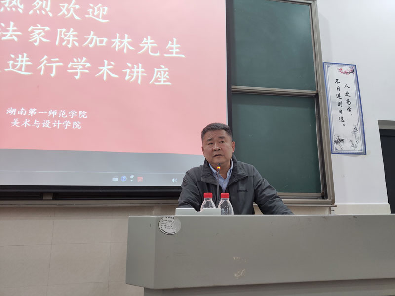 3月26日下午,中国书法家草书委员会秘书长陈加林先生莅临公司进行了主题为“草书的临摹与创作”的学术讲座。讲座在BV伟德官方网站鹤鸣南楼111阶梯教室举行,BV伟德官方网站书法学师生200余人到场聆听讲座,讲座由公司书法学专业负责人陈阳静博士主持。