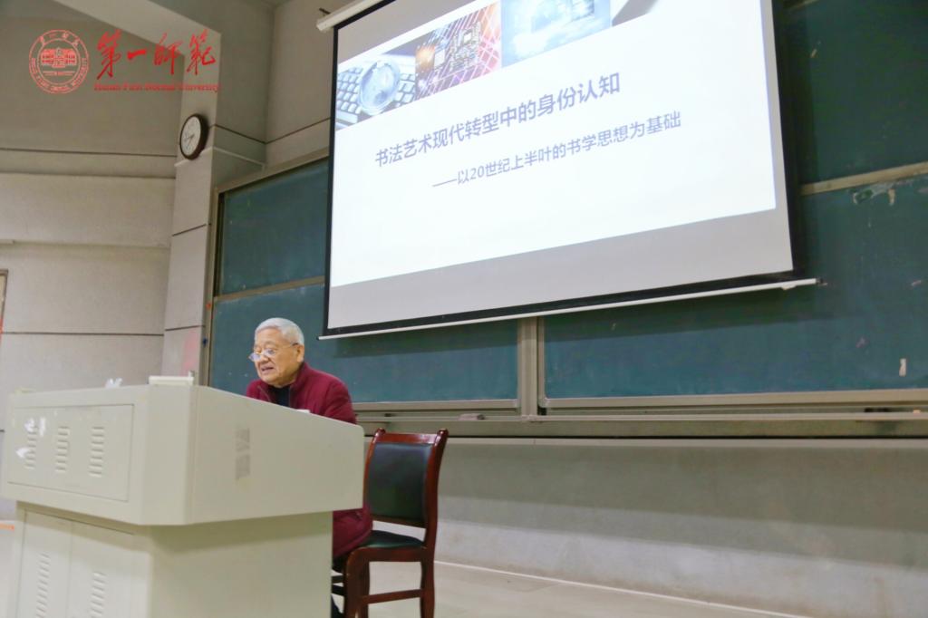 2018年11月16日晚,中国书法家协会顾问、中国艺术研究院、四川大学博士生导师胡抗美教授,应邀在润寰楼南106教室为公司BV伟德官方网站书法学专业全体师生及书法爱好者进行了题为《书法现代转型中的身份认知》的学术讲座。