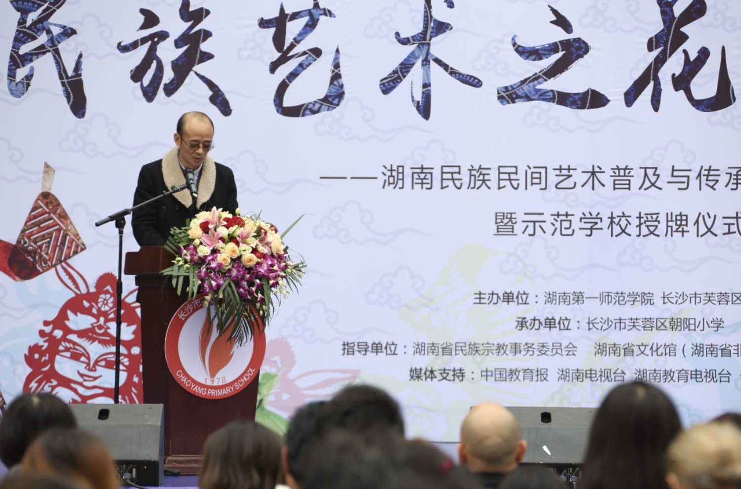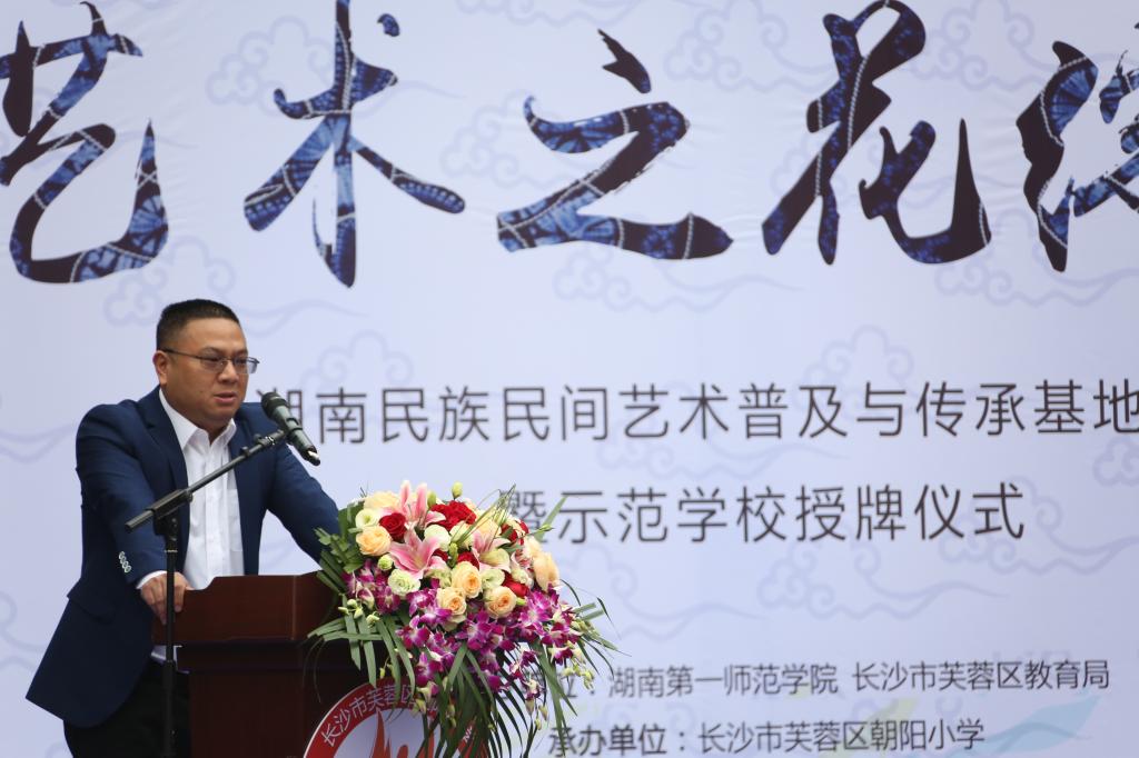 11月15日上午,公司主办的“民族艺术之花绽放校园——湖南民族民间艺术普及与传承基地成果汇报暨示范公司授牌活动”在长沙市芙蓉区朝阳小学举行。活动仪式上,基地主持人BV伟德官方网站经理范迎春教授对前期工作进行了总结汇报,湖南省民族宗教事务委员会副巡视员柏桓和BV伟德官方网站科研处处长赵奇钊代表公司为“湖南民族民间艺术普及与传承示范公司”芙蓉区朝阳小学和永州市双牌县蔡里口小学授牌。本次活动是湖南省民族民间艺术普及与传承基地自去年8月成立以来开展的系列工作之一。