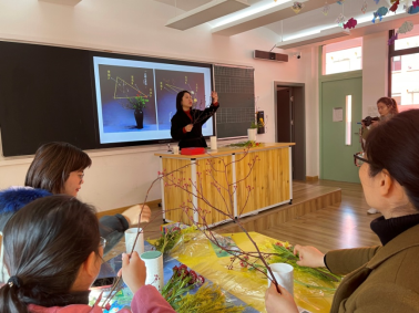 为进一步丰富老师们的精神文化生活,感受绿色健康的生活方式,BV伟德官方网站吕紫薇老师带来了一场精彩的插花艺术课堂。课上,老师先向大家介绍了她插花的初衷,即五“心”好评:耐心、静心、虚心、关心、开心;随后系统介绍了中国插花的四大类型:写景花、理念花、心象花、造型花;最后带领老师们进行瓶花创作。老师们在吕紫薇老师的耐心指导下,积极实践,巧妙构思,将自己的创意转化为一件件高低错落、疏密有致,兼具自然美和生活美的艺术品。