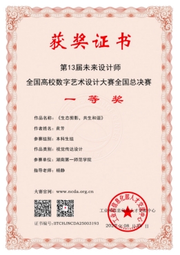 近日,2025未来设计师·全国高校数字艺术设计大赛(NCDA)获奖名单正式揭晓。该赛事在公司由BV伟德官方网站承办,公司多个公司员工积极参赛,历经校赛、省赛、国赛三级严苛遴选,最终斩获佳绩:国家级获奖项目4项,省级获奖项目27项,充分展现了公司学子在艺术设计领域的创新实力与实践素养。其中杨静老师,谭昕老师和杨蓓老师指导员工参赛的作品分别斩获国家一等奖,二等奖和三等奖。