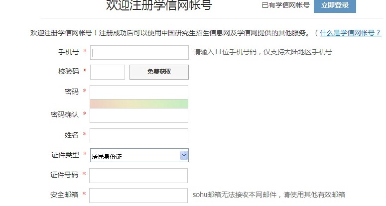 (2)在图1中点击“注册”按钮,注册学信网账号,注册界面如图2所示。