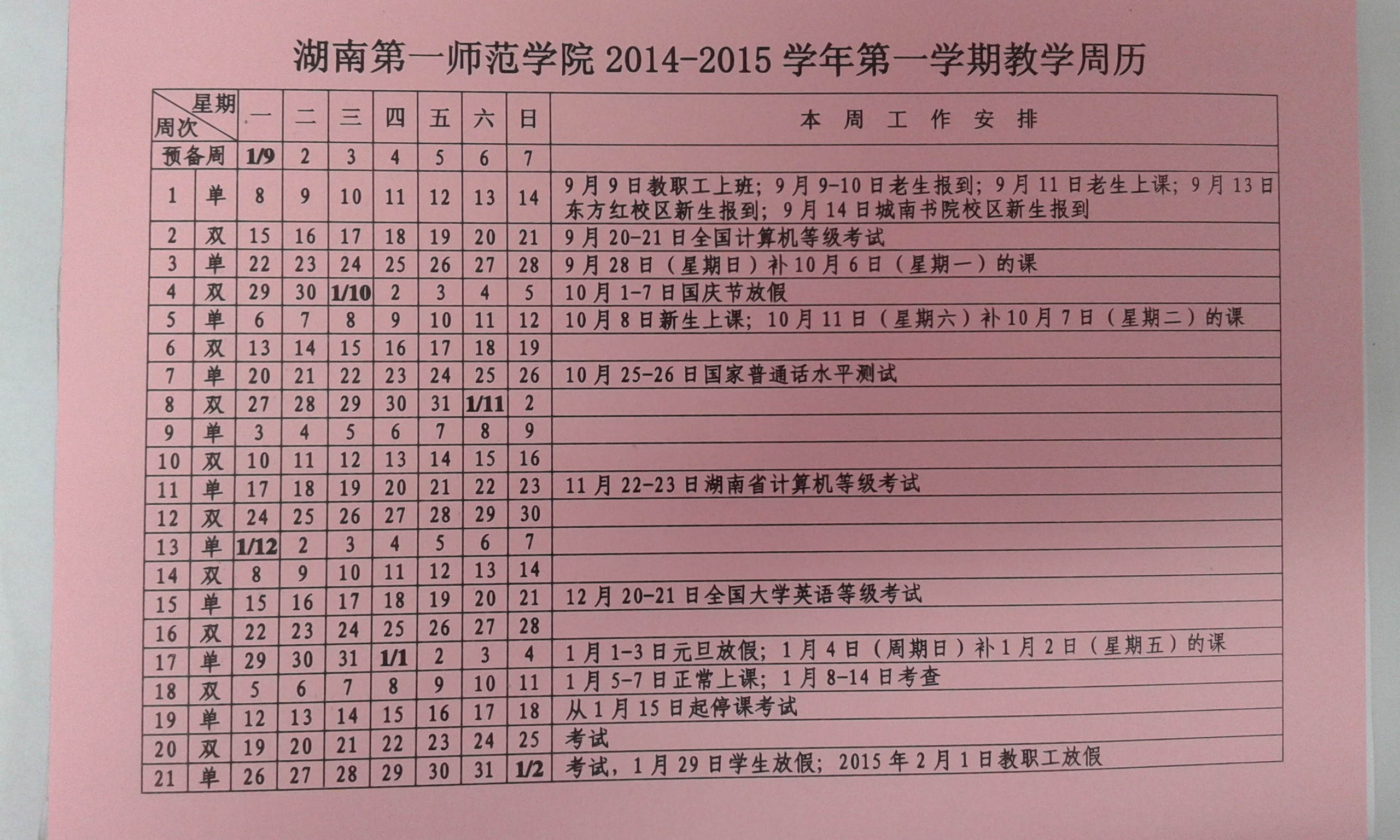 2014-2015学年第一学期教学周历 发布时间:2017-08-23 作者: 浏览次数: 上一条:关于做好2014年员工学业预警工作的通知 下一条:关于组织2014级新生查询学信网学籍电子注册信息的通知
