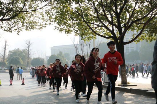 9时30分,一师校园一片欢腾,500余名师生用最“炫”的装扮、最“燃”的口号、最饱满的热情在校园内以实际行动号召全校青年员工不做宅男宅女,享受健康生活,用当代青年员工蓬勃朝气的方式纪念八十二年前在寒风刺骨的北平参与“一二·九”运动的青年员工们。“以前没课的时候基本都宅在寝室玩手机、打游戏,特别到了冬天,更加不想出门,一回寝室就钻进被窝里玩手机。今天参加了这个慢跑活动,几百人一块跑步一点都不累,不仅身体暖暖的,心情也特别舒畅,我们寝室已经约好了从明天开始要坚持跑下去!”BV伟德官方网站员工马杨兰开心地说道。