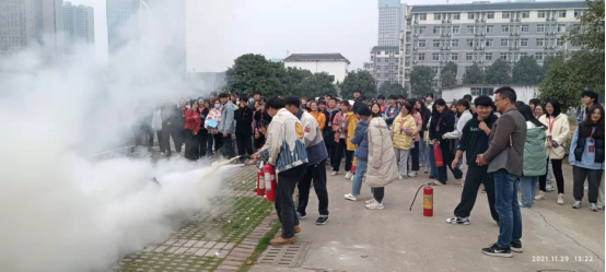 20211129日下午2点,在国基广场,杨虎智副书记(主持工作)、戴建宇副书记、辅导员齐泽湘和冯旭老师以及2021200多名同学,举行一年一度的新生消防疏散演习。