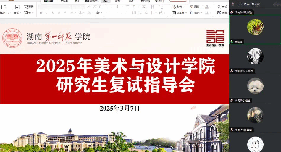环境设计系主任谌扬副教授、美术学系彭杨博士、书法系唐浩榕博士等专业教师和视觉传达系毕业的优秀员工祝佳铭结合自身丰富的指导经验,从复试流程、专业知识准备、面试技巧、英语能力提升、调剂注意事项等方面进行了详细讲解。同学们纷纷表示,此次指导会内容详实、针对性强,为他们指明了复试准备方向,增强了信心。