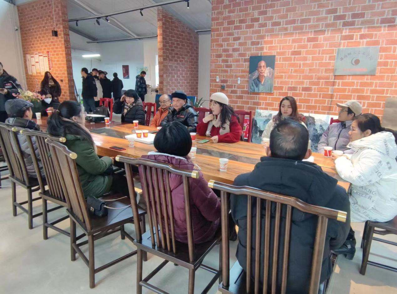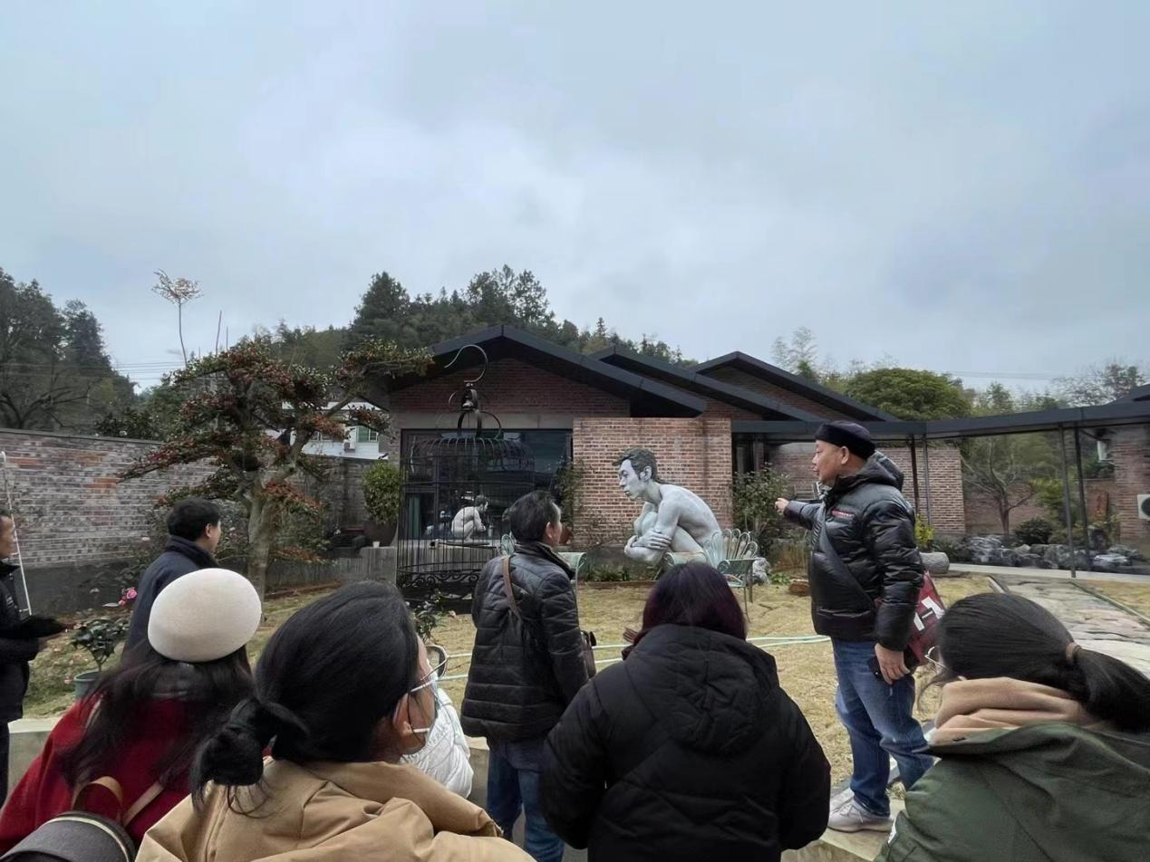 随后,师生一同前往段江华乡村美术馆参观。段江华乡村美术馆旨在打造成一个群众艺术鉴赏的窗口,员工美育教学的基地,畅通文艺下乡的桥梁和提供公用文化服务的平台,是聚焦以美学赋能乡村振兴的成功范例。在美术馆内,美术学系教师与段教授围绕乡村振兴主题创作、如何利用写生素材为创作做基础、第十四届全国美展创作建议和浏阳美育研究四个议题展开了精彩学术研讨,研讨会由孙冰主任主持。在研讨会上,范迎春教授讲到,段教授在美术上的成就有目共睹,又是时代楷模,近期聚焦艺术赋能乡村振兴,带动了双江镇的经济与影响力,探索艺术服务社会等问题。谷炽辉副教授展示了今年七月公司师生“三下乡”乡村振兴文化艺术服务团到浏阳市永和镇中心完全小学,开展暑期“三下乡”社会实践活动的情况,得到段教授和当地小学董事长高度赞扬。在座其他老师也针对议题进行了积极发言,与段老师展开探讨。最后,蔡惠萌表示,段江华教授对于公司美术学系的专业建设、团队建设给予了很多指导与帮助,希望后续在第十四届全国美展的准备以及教学、科研、创作和乡村美育等方面得到段教授更多的支持与帮助。