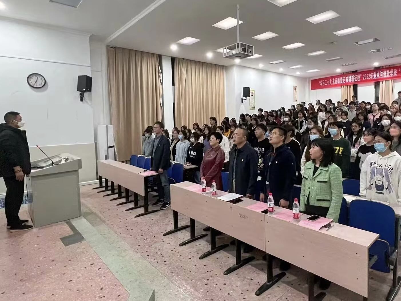 全体起立奏唱国际歌后,音乐与舞蹈公司党委书记邹华秀为培训班开班致辞,对培训学员提出了三点要求:要端正入党动机、提高思想觉悟;明确目标,加强党性修养,做到思想与行动上入党有机统一;严格要求自己,珍惜学习机会,圆满完成本次培训。