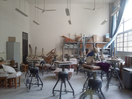 主要大型仪器设备包括雕塑转台、电窑、拉胚机、练泥机、雕塑转台、外线(UV)光固化机、铜版机、绷网机、网印机、斜壁半自动丝印台、曝光机、箱式晒版机、烘干机、静音气泵、空气压缩机、网版清洗机、曲面印刷机、刮墨刀研磨机、绘图桌、拷贝台、糨糊装裱机、切角机、角花机,数字临摹机,切版机等。