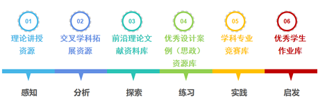 该课程构建了六大课程资源库,包括理论讲授资源、交叉学科拓展资源、前沿理论文献资料库、优秀设计案例(思政)资源库、优秀员工作业库以及学科专业竞赛库,为感知、分析、探索、练习、实践以及启发六大教学环节的设计提供有效支撑;为四大模块、三个维度的教学内容提供有利的补充。