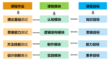 对应课程内容三个维度中四大模块的划分,课程作业通过理论基础、思维能力、方法技能和设计创新四个方面进行设计,以此来检验员工是否掌握了从理论过渡到实践的综合能力,从而达到课程建设中知识、思维、能力和素养四个目标。